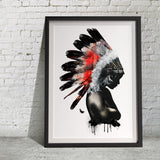 This Limited Edition Art Print takes my famed Headpiece image and adds elements of gritty aerosol and watercolour spills to the main feather areas. What was once a delicate imagery, now takes on a more edgy street feel, while still keeping the strong thinking pose that draws many to it.