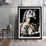 The intense encounter of this couple is flanked by a hand-painted canvas artwork imagery, allowing the texture of paint brush strokes and drips to show themselves.  Hang it individually as a statement piece or with other Art Prints in this series.