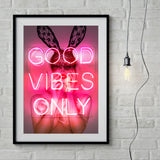 This Limited Edition Art Print takes sexy, raw and demanding female attitude and overlays it with a seductive GOOD VIBES ONLY neon light imagery.  There is something very sexy, seductive and underground about neon lights and this carefully created imagery delivers this perfectly!