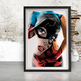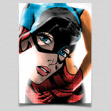 The strong and powerful curves of the female form are flanked by iconic and striking pop art imagery. Hang it individually as a statement piece or with other Art Prints in this series.