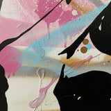A pastel colour palette makes way for strong, top-layer imagery to evoke emotion in this work. The artwork uses background texture and depth through aerosol and hand-painted dimension as intrigue and interest once viewed in person. To be hung individually or as a 2 UP, with the other artwork from this series.