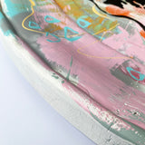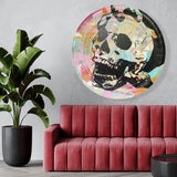 The clean lines of this painted skull motif are flanked by solid pops of pastel colour, all encompassed within a tiered round surface. With a Pop Art / Traditional fusion feel, this artwork will surely feel at home, surrounded by so many decor finishes.